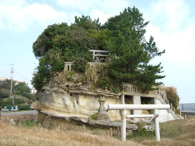 国道245号沿いにあるロードパークです。目の前に太平洋が広がり、奥には河原子海岸の景勝地でもある烏帽子岩を見ることができます。